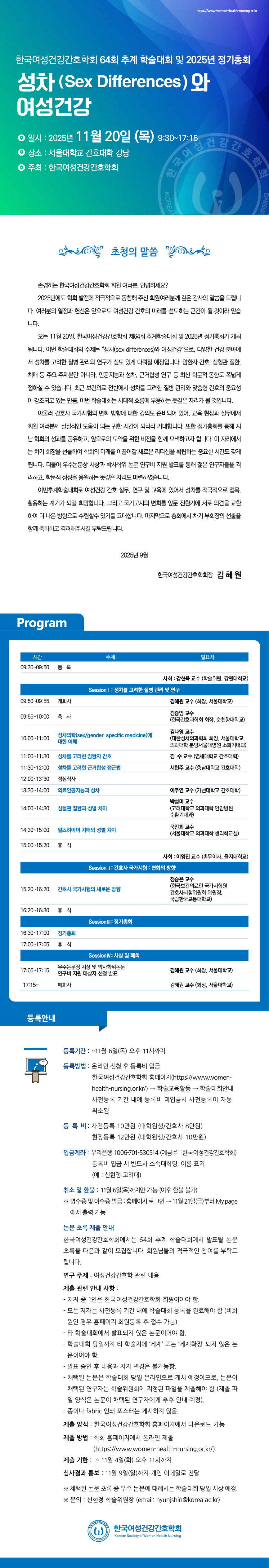 -등록비 입금계좌: 우리은행 1006-701-530514 (예금주: 한국여성건강간호학회)