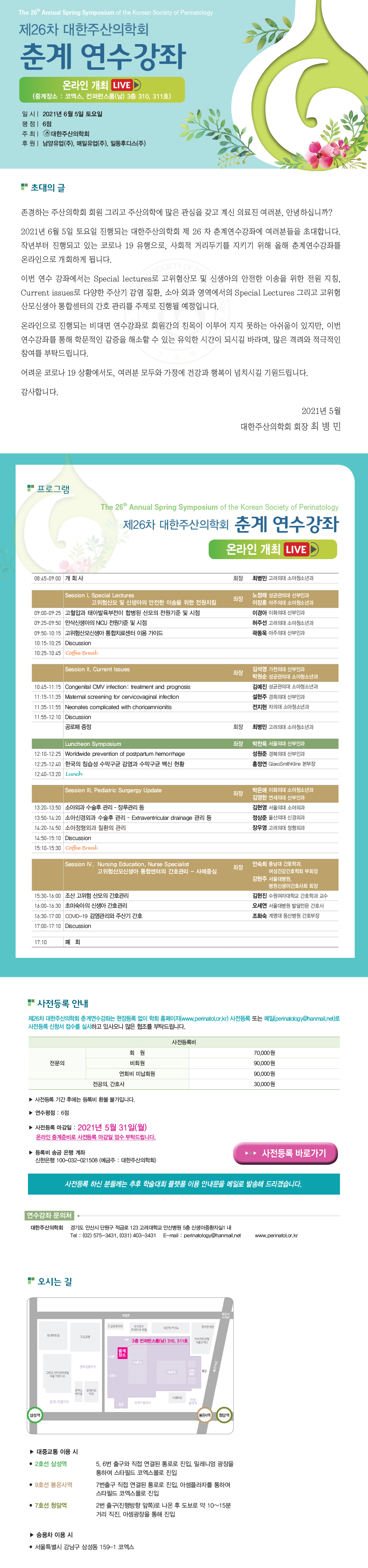 대한주산의학회 온라인 춘계연수강좌 개최 안내